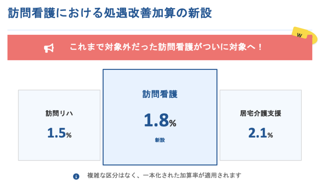 - 2026年6月施行:訪問看護に1.8%の処遇改善加算が新設