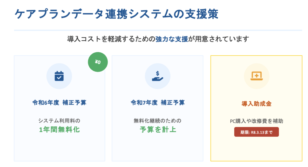 - コスト支援:令和6年度補正予算により、1年間の利用料が無料になります。